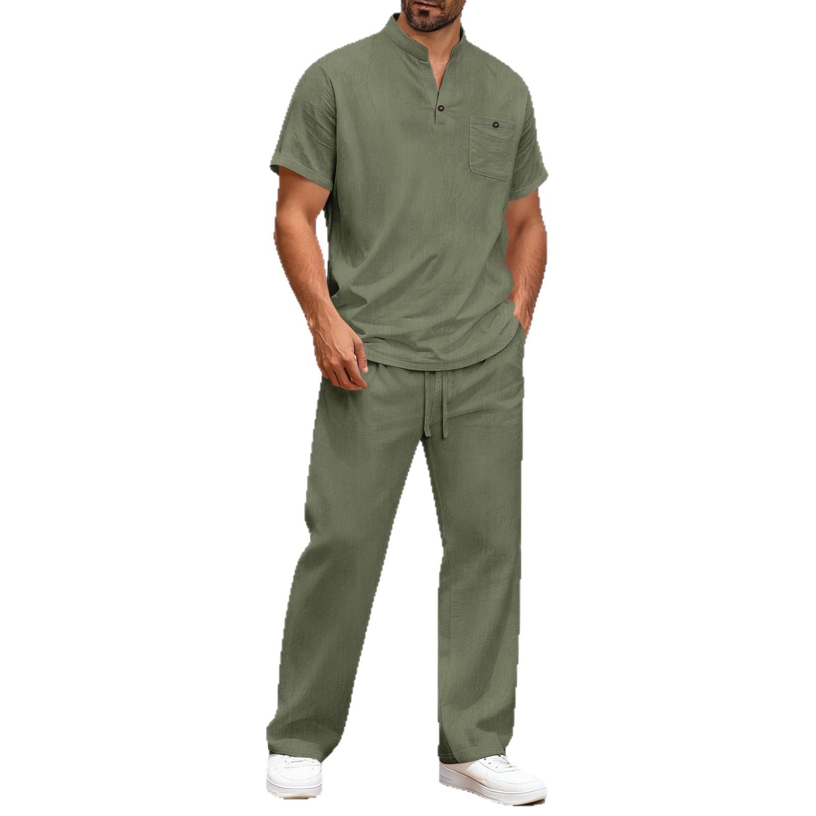 Cotton And Linen Summer Men's Solid Color Casual T-shirt Short Sleeve Shirt