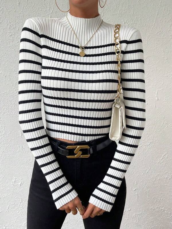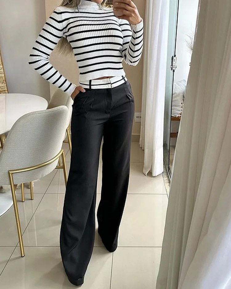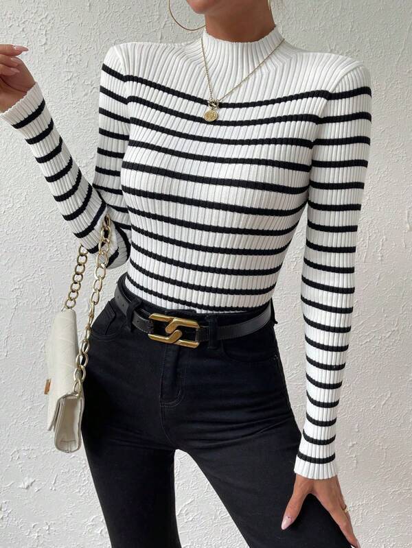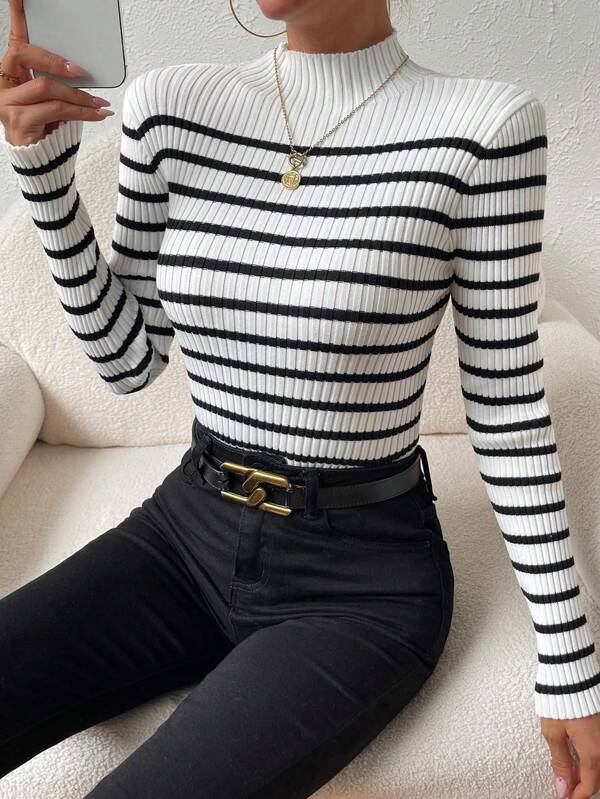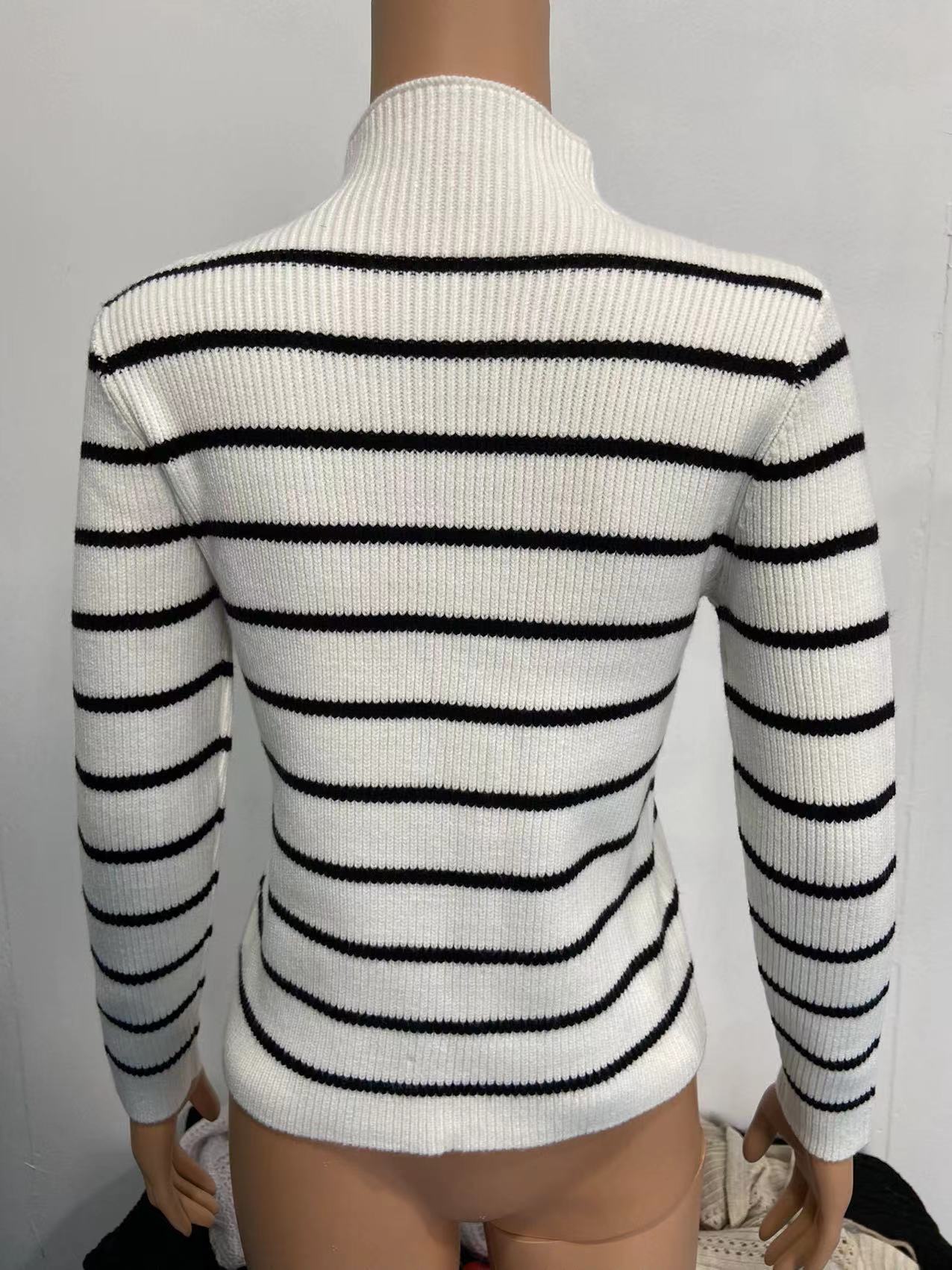 Fashion Long Sleeve Sunken Stripe Turtleneck Casual Slim Striped Sweater